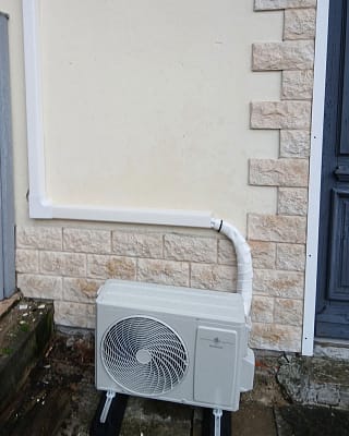 Lors d’une rénovation complète à Oye-Plage, nous avons installé deux pompes à chaleur air/air réversibles, assurant le chauffage de la salle à manger, de la cuisine et du salon.